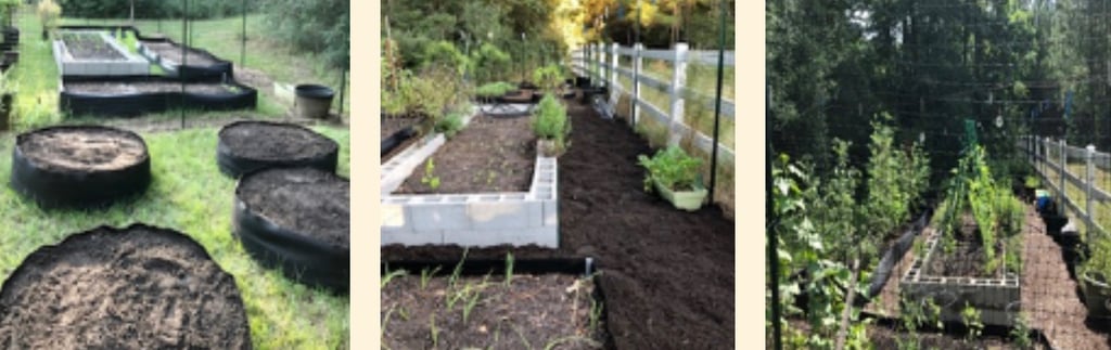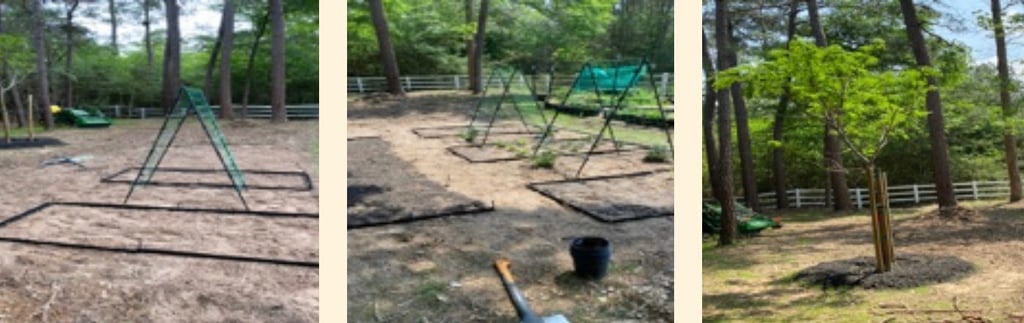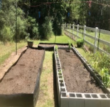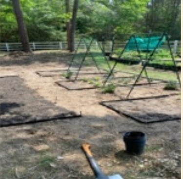 Once I started the Chestnut Immersion program, I dedicated all these beds to growing medicinal herbs that would “feed” my passion for experimenting with lots of plants but squeezed in a couple of additional beds all the way in the back for our favorite heirloom veggies (and avoid divorce LOL). But NOW, as dreams and plans keep getting bigger – Texas style – I took the plunge and just cleared the area across my fenced garden where I'll set up beds for growing medicinal herbs and roots, transplant my potted elderberries, and plant mimosa and witch hazel trees.